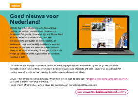 In deze Nieuwsrubriek lees je meer over de Goed Nieuws Voor Nederland campagne van Alpina op radio en online. En je vindt er meer informatie over de mogelijkheid om ANVA Applicatie beheerder te worden. Wellicht iets voor jou?